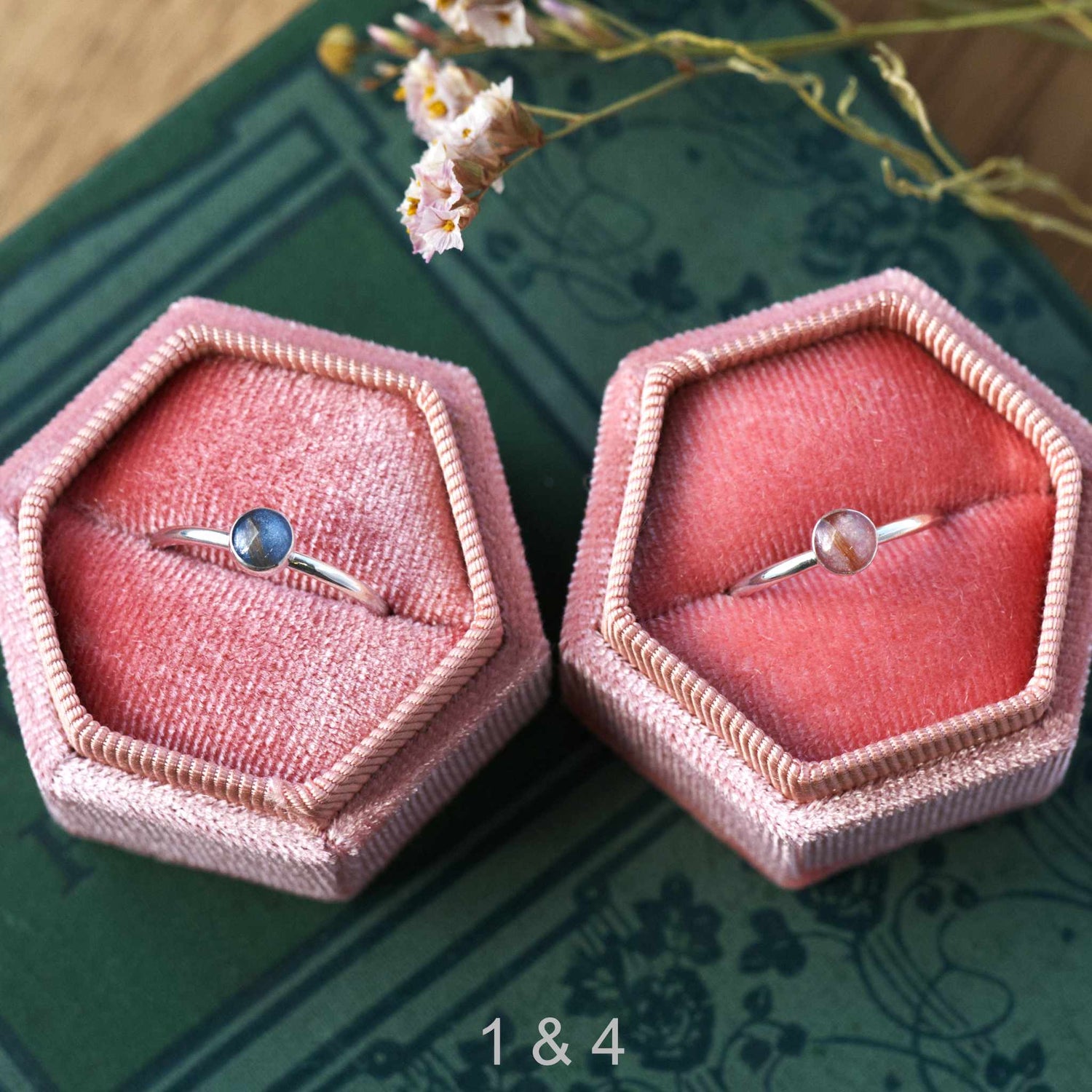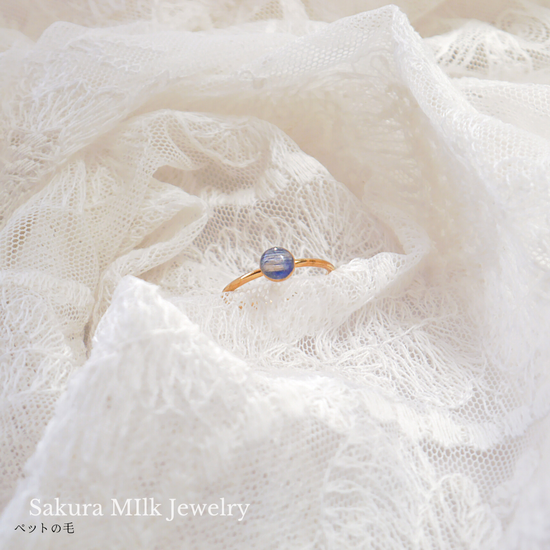 わんちゃんがお空へ旅立ち、夫と自分用にリングをオーダーしました。石の色も可愛くて、オパールも綺麗で、柔らかいヘアーが少し見えて、とてもいい記念になりました。ふわふわな思い出とともに世界中を一緒に旅できる、そんな素晴らしいリングです。